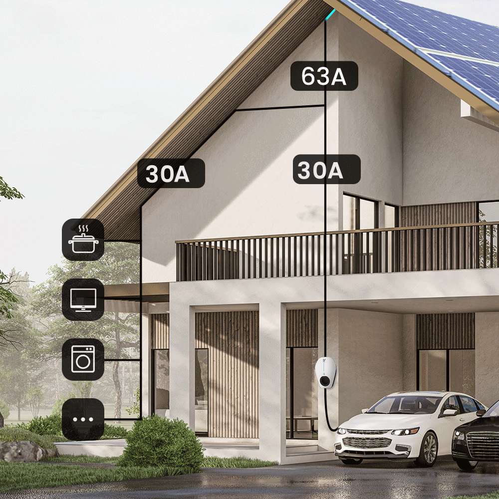 The CT clamp can be connected to the IOCAH29 mini smart EV charger directly for current monitoring of other home appliances, without extra device. The charging current is automatically adjusted according to real-time current values. It can prevent your home from overloading with installation of single or multiple chargers, either online or offline.