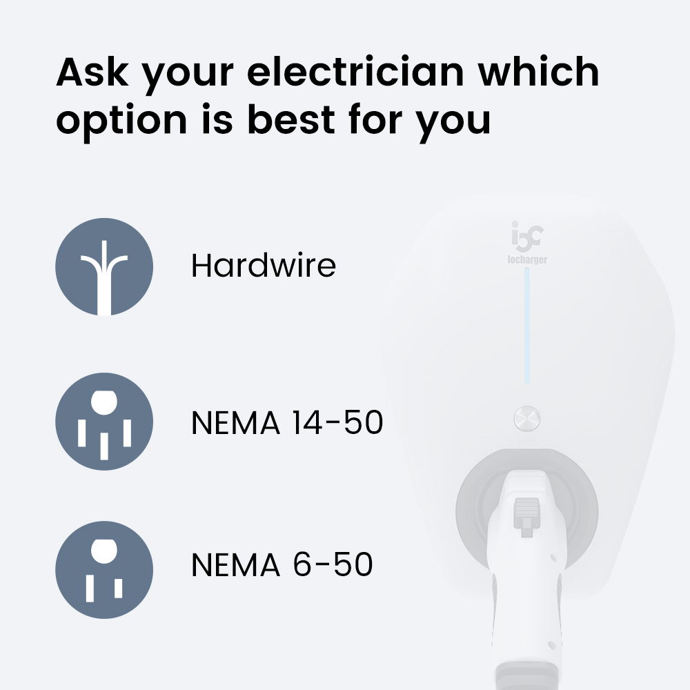 Your electrician can easily install the IOCAH29, with an available Hardwired, NEMA 6-50P or NEMA 14-50 plug installation.