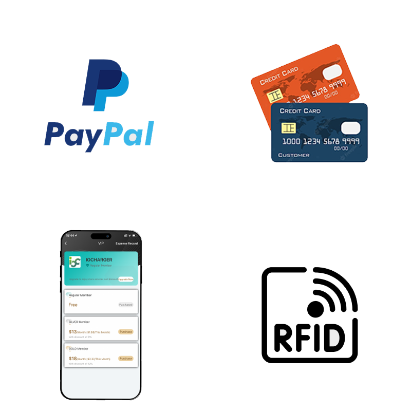 IOCAW12 as a commercial charger supports multiple payment methods to meet users’ different payment requirements. Paypal, Credit Card pay with mobile App and NFC payment supported. With iocharger’s Kiosk Gateway, direct credit card swiping payment is also supported.